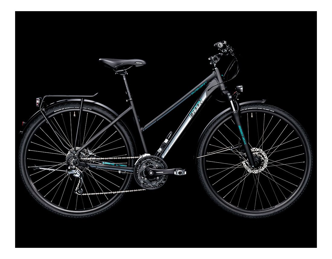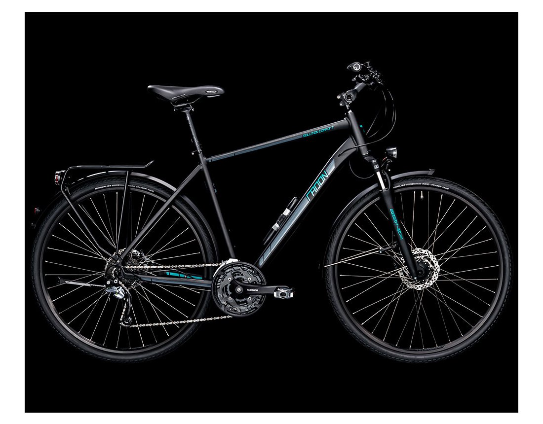 Das SOLUTION COMFORT ist der Macher unter den Trekkingrädern. Mit Suntour-Federgabel, leichtrollenden Schwalbe Road Cruiser und Ergon GP10-Griffen verfügt es über hervrorragenden Komfort auf Straßen und allen befestigten Wegen. Die 27-Gang-Schaltung von Shimano verfügt über eine große Bandbreite und nimmt selbst schwierigen Anstiegen den Schrecken. Zuverlässig bremst die hydraulische Scheibenbremse von Shimano. Mit dem praktischen Gepäckträgersystem von Racktime sowie der SKS Rookie XL-Pumpe bist Du auch für jede längere Tour und Lebenslage gewappnet.