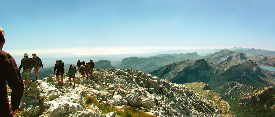 Die Fünf-Gipfel-Woche umfasst die Besteigung des Puig Tomir, des Puig de Massanella und eine Gratwanderung über die Gipfel der Rateta, Na Franquesa, des Puig de l'Ofre und den Rundweg des Puig Roig. Die Wanderungen bieten spektakuläre Fernblicke auf Mallorca und führen uns von Lluc nach Sóller.